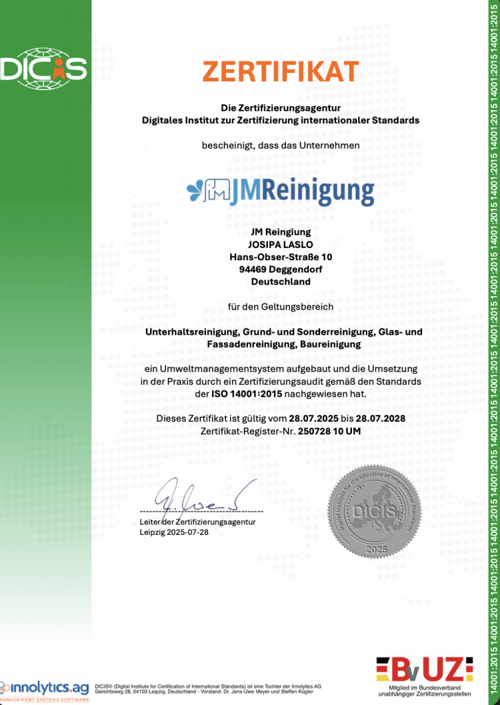 Seit 2019 stehen wir für professionelle, zuverlässige und individuell angepasste Reinigungsdienstleistungen in Deggendorf und der umliegenden Region. Mit einem engagierten Team von inzwischen 80 Mitarbeiter haben wir uns zu einem der führenden Reinigungsunternehmen in der Region entwickelt und betreuen eine wachsende Zahl zufriedener Kunden – von kleinen Büros bis hin zu großen gewerblichen Objekten.